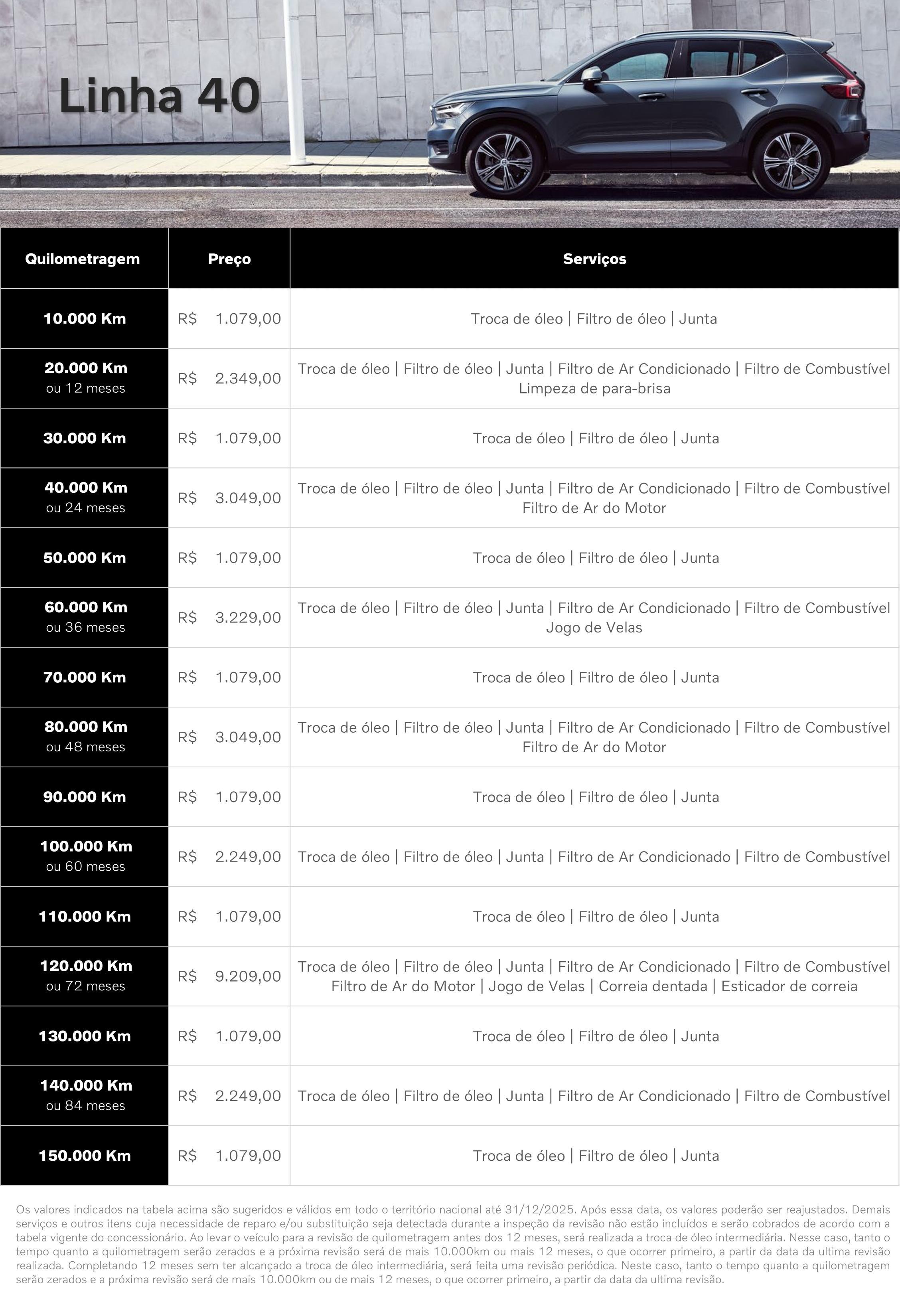 Saiba os valores de cada revisão para seu V40 ou XC40.